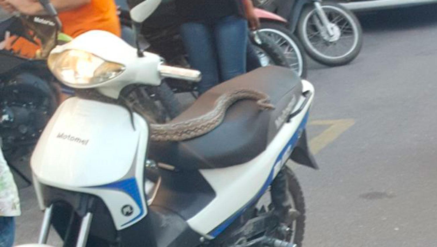 INSÓLITO: una víbora les salió del tablero a dos mujeres que circulaban en una moto por pleno centro