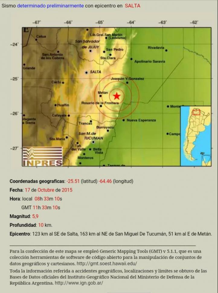 #Temblor de 5,9 con epicentro en Metán, Salta, a las 8.33, confirma el Inpres. http://t.co/OTK1AEwAvx #Tucuman pic.twitter.com/pAmnbACpaw