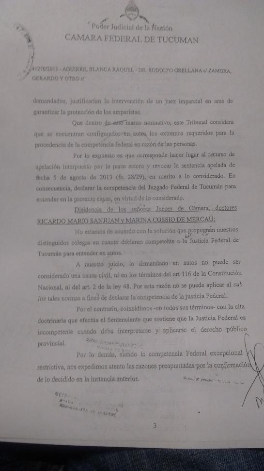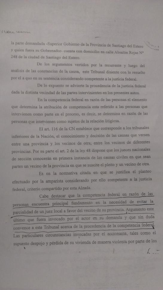 Ante los oídos sordos y la “parcialidad” de la Justicia santiagueña, Orellana acudió a la Justicia Federal de Tucumán. Actualmente la causa civil está en manos del juez federal Nº 2, Fernando Poviña, quien en un primer momento se había declarado incompetente pero luego la Cámara Federal de Apelaciones accedió al pedido de los demandantes al admitir que existía una “parcialidad manifiesta” por parte de la Justicia santiagueña, señaló la abogada Mascoff.