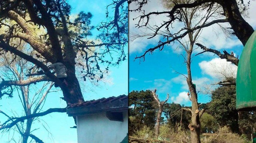 Al igual que Lisa en uno de los capítulos de los Simpsons, un hombre se subió a la copa de un pino para evitar que los trabajadores municipales lo talen aunque, lejos de lograrlo, terminó demorado en la comisaría.