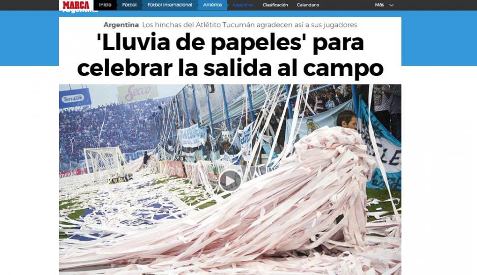 El diario Marca, de España, dedicó una nota a mostrar la lluvia de papeles con la que los simpatizantes decanos recibieron a los jugadores el domingo